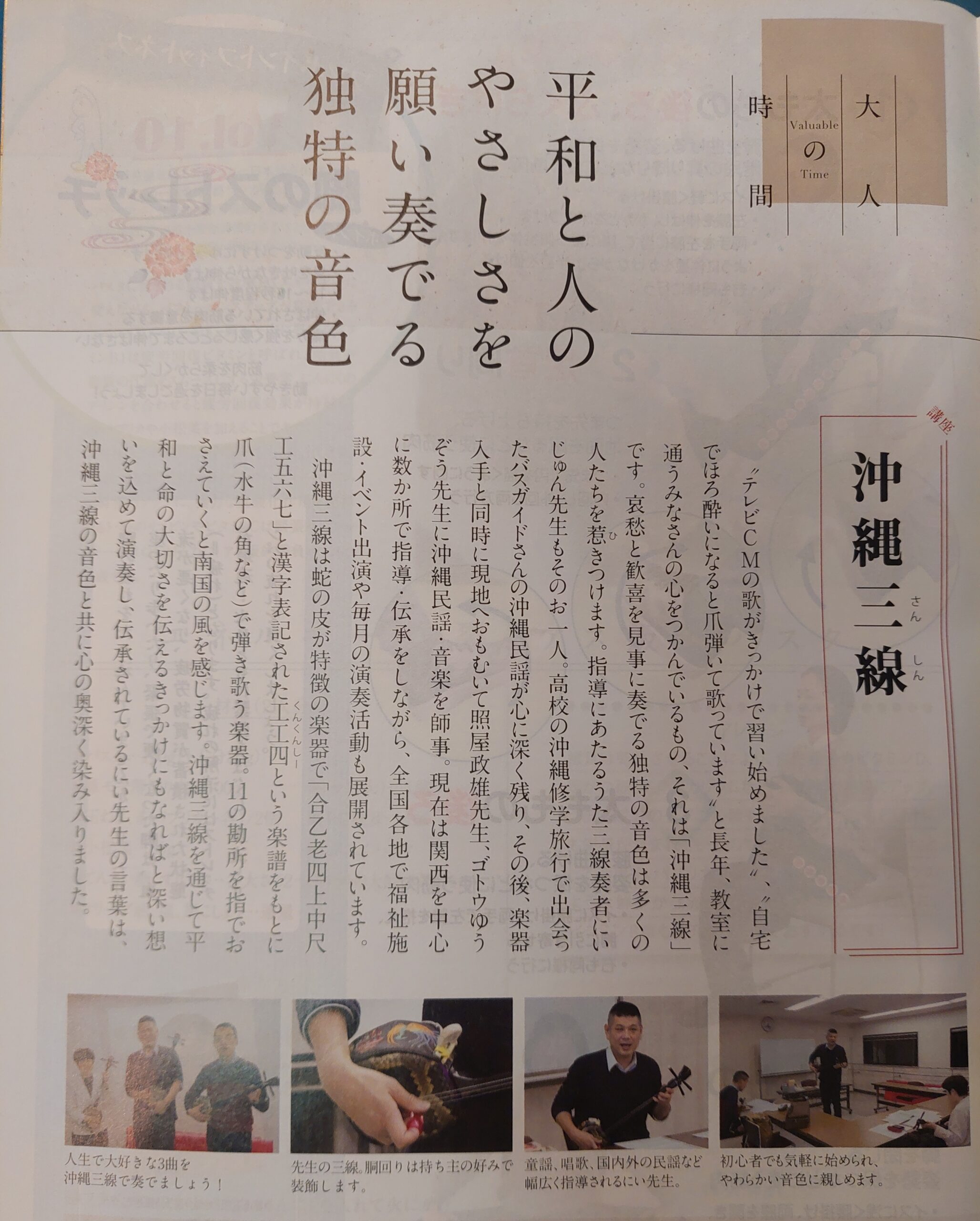 並行して、福祉・教師などの幅広い経験を重ね、うた三線奏者としての揺るぎない芸歴を持っている。