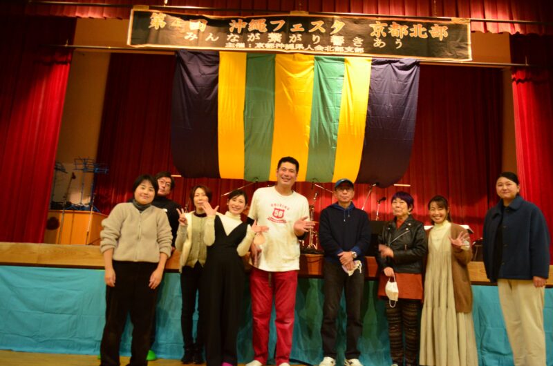 京都沖縄県人会北部支部は解散致しましたが、京都北部に住まわれる沖縄県ご出身の方や、その芸能に関わる方が山や海を超えて集まり交流ができた意義はおおきかったといえます。数年前の京都京北での開催した時の写真ですが、つい最近の出来事ようです。