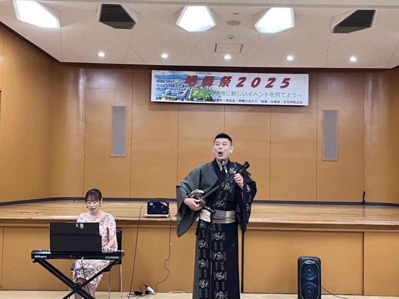 明石市にて明舞祭2025に参加しました。Sayakaの協力のもと会場は笑い包まれ、故郷をテーマにした歌には涙を流されてはりました。最後はご陽気にカチャーシタッチ!