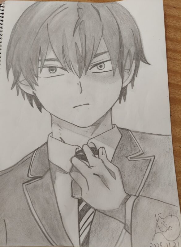 アカデミーなんたら、というアニメの登場人物らしい。もう少し全体のバランスを考えれば良かったのですが、立ちながら、歩きながら、あちらこちらで描いてるとこうなります。ある程度はそれなりにできたのではないかなとか よころんでもらえることが何よりです。