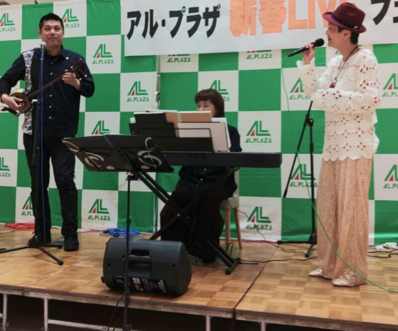 アル・プラザ亀岡にて音響のお手伝いをしていました。勉強になります😊 『音響場所にいてたらもったいない!ステージにあがってもらわなあきませんよねぇ?』とお客さんに問いかけをしてくれたジュディさんの御厚意により1曲唄わせて頂きました。